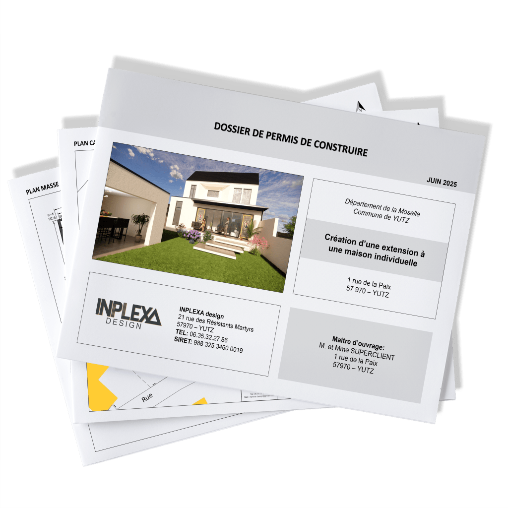 Chaque dossier comprend les plans, façades, insertions 3D, cerfa, et l’ensemble des documents graphiques nécessaires à la demande.
